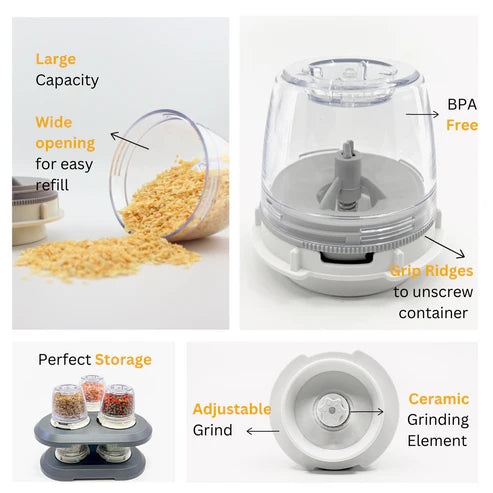 Grind with Precision: Ideal for everyday and oily spices like sea salt, peppercorns, cardamom, cumin and more!
